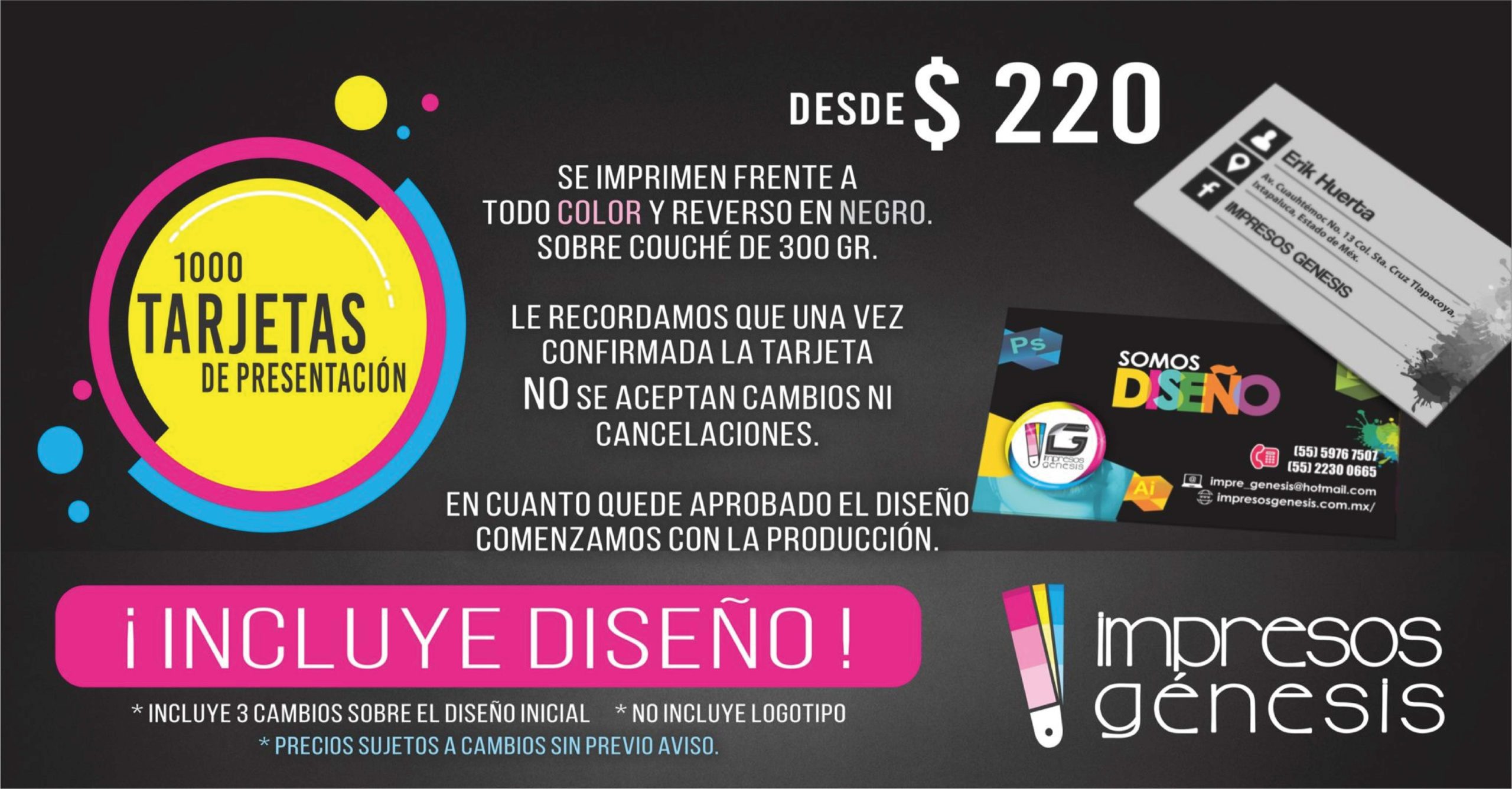 Su catálogo incluye productos como tarjetas de presentación, volantes, invitaciones y material promocional, atendiendo tanto a negocios locales como a particulares. Con un enfoque en la atención personalizada y plazos de entrega competitivos, IMPRESOS GENESIS se ha convertido en una opción confiable en la zona.